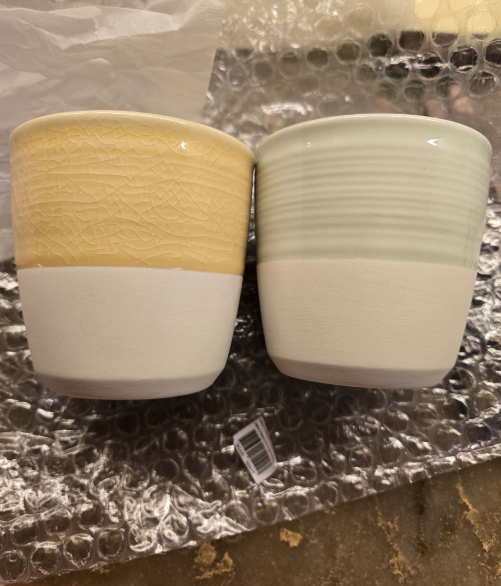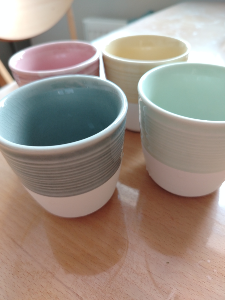 очень понравились чашки, не знала какой цвет выбрать, взяла разные. взяла для чая, так как не пью кофе. жаль что такой формы нет побольше объёма.