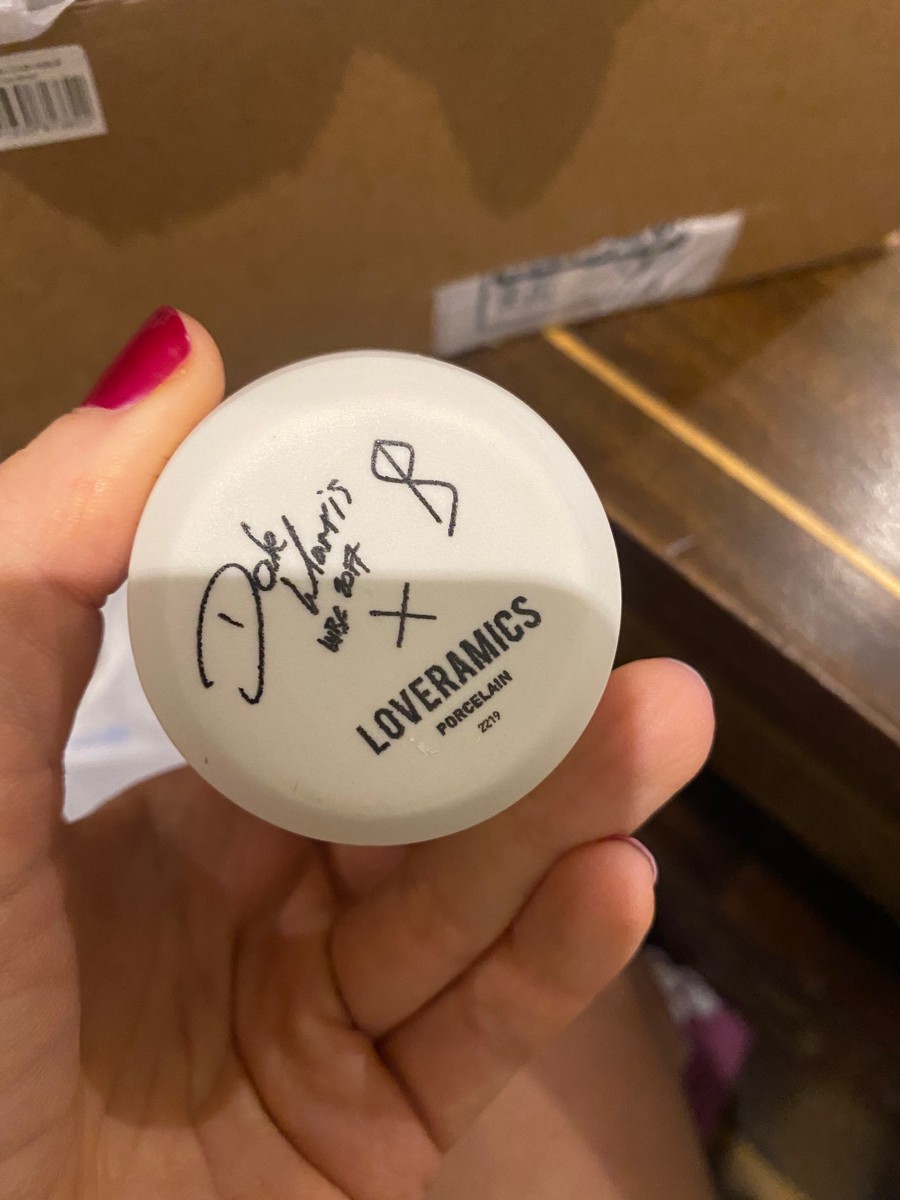 на внешней стороне дня чашки есть автограф Дейла, год его победы и гончарная печать Бена.