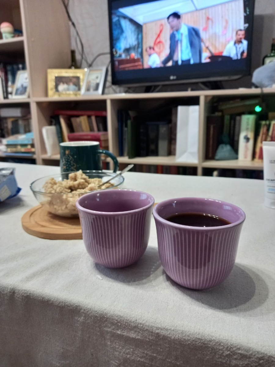 Лучшая чашка для кофе и чая эвэр! (Если не считать эти де, но в объёме 250 мл. Однако, в РФ их сейчас достать не так легко) Позволяет раскрыть динамичные напитки в полной мере (например фильтр), так как остывание происходит очень равномерно! Плюс одна в "коллекцию"! Фиолетовой у меня как раз не было!