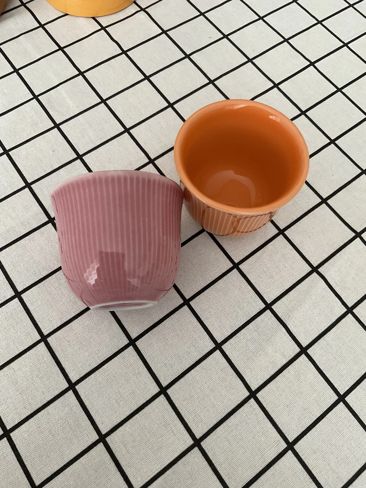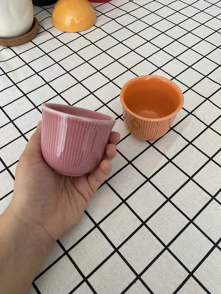 Тяжелая чашка, очень эргономичная, хорошо держит тепло и раскрывает вкус. Казалось, что будет более ребристая, а это эффект рисунка, что хорошо. Очень нежный лимоный пастельный цвет.