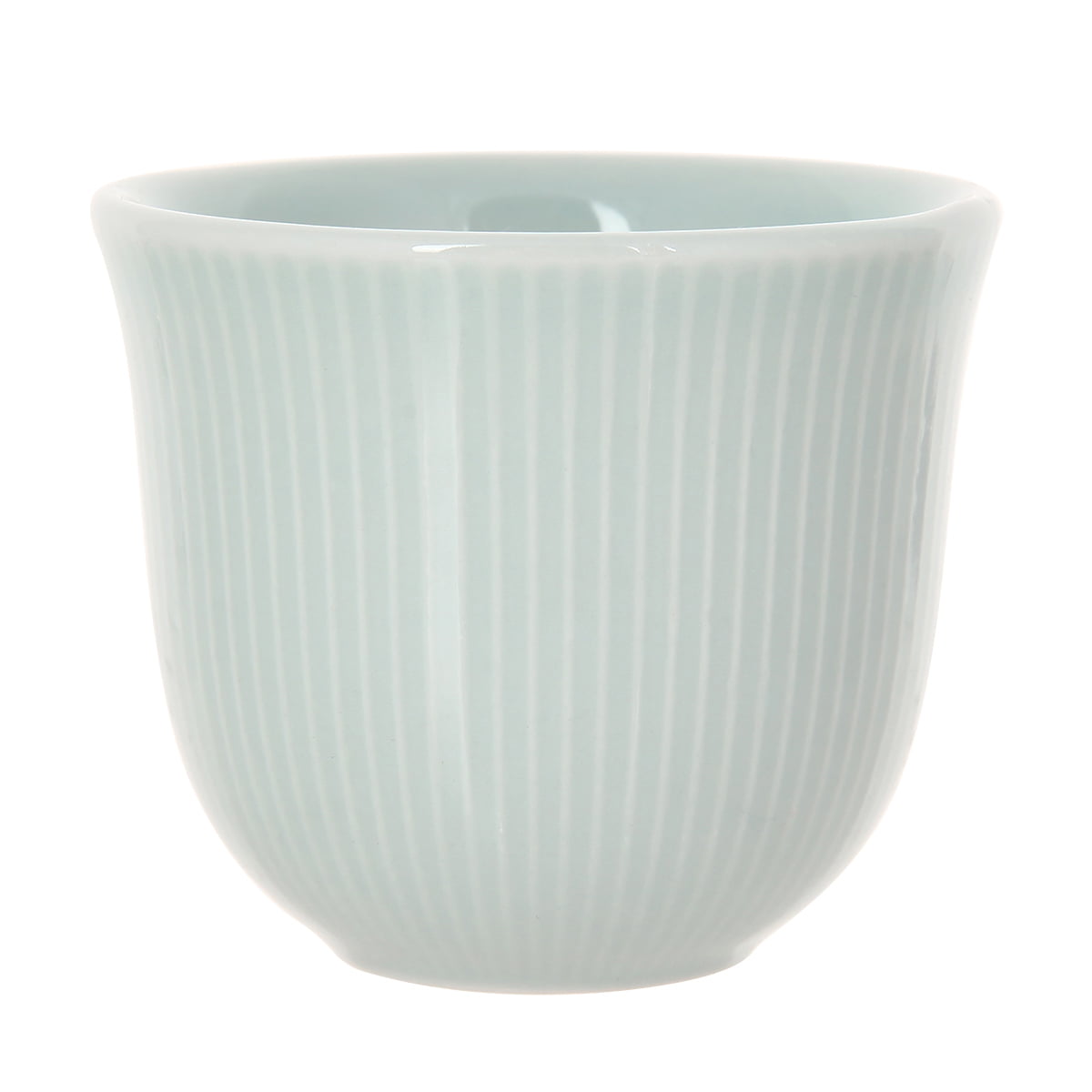 Очень стильные чашечки. Приятно лежат в руке за счет ребристой поверхности. Отлично подходят под эспрессо. Красивый цвет