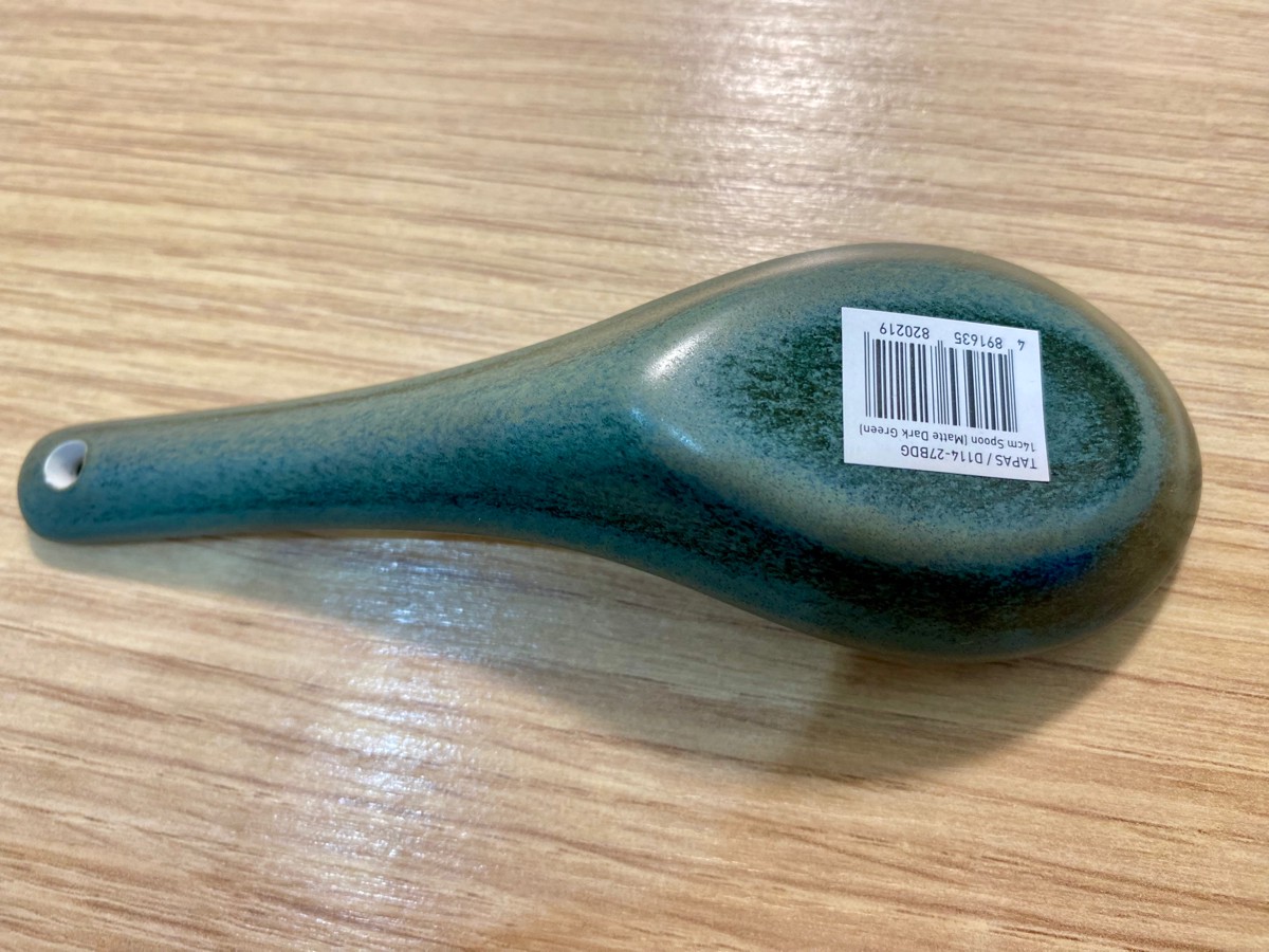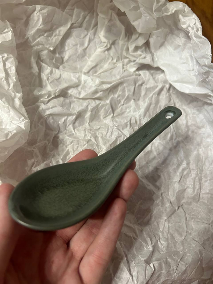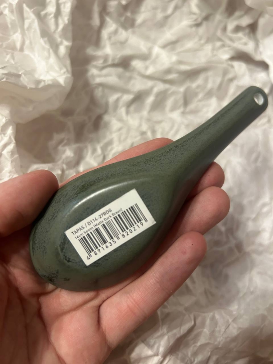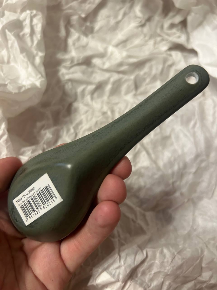 Купил для коллекции к зеленому набору бренда. В целом, неплохая. Идеально подходит по размеру в соусник 8,5см. Не понравилось, что дырочку оставили без покраски, а еще на всей посуде Loveramics есть надпись, а эта ложка как будто не от них.