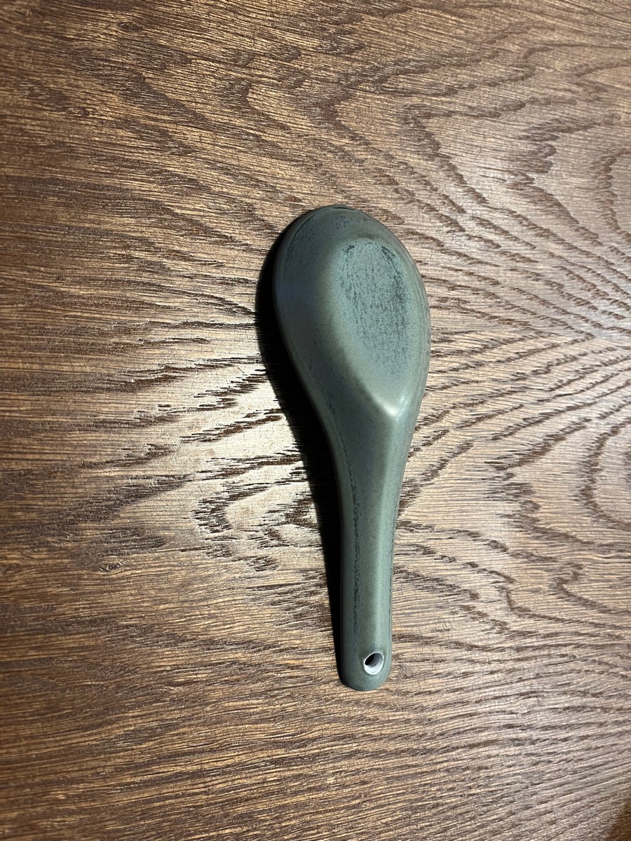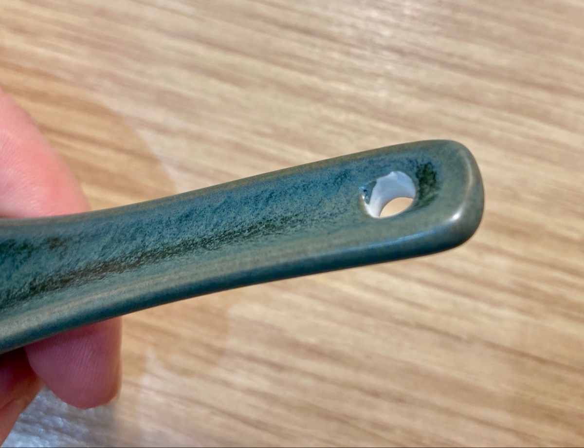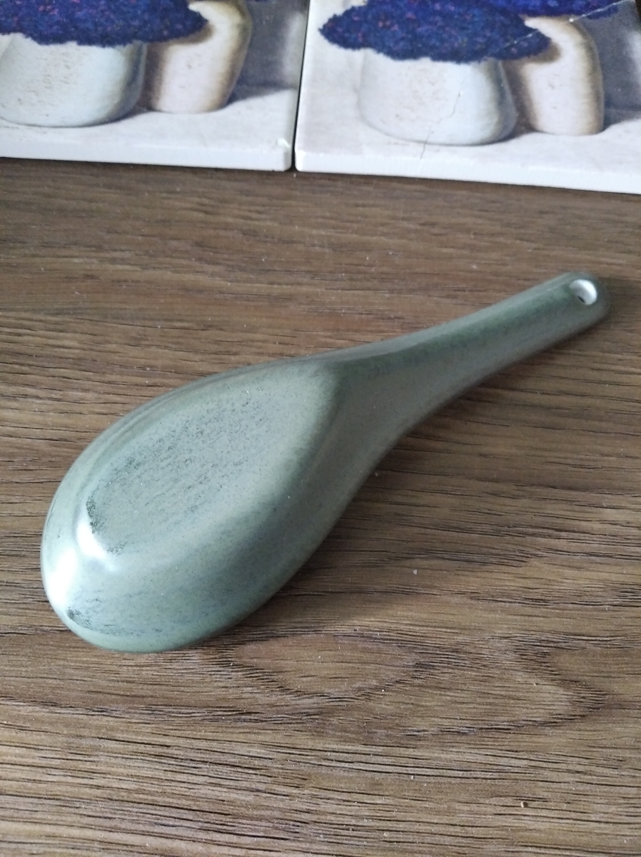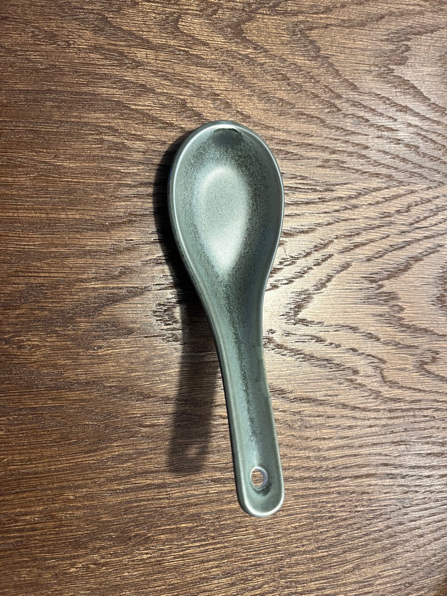 Купил для коллекции к зеленому набору бренда. В целом, неплохая. Идеально подходит по размеру в соусник 8,5см. Не понравилось, что дырочку оставили без покраски, а еще на всей посуде Loveramics есть надпись, а эта ложка как будто не от них.