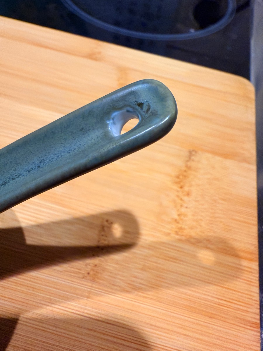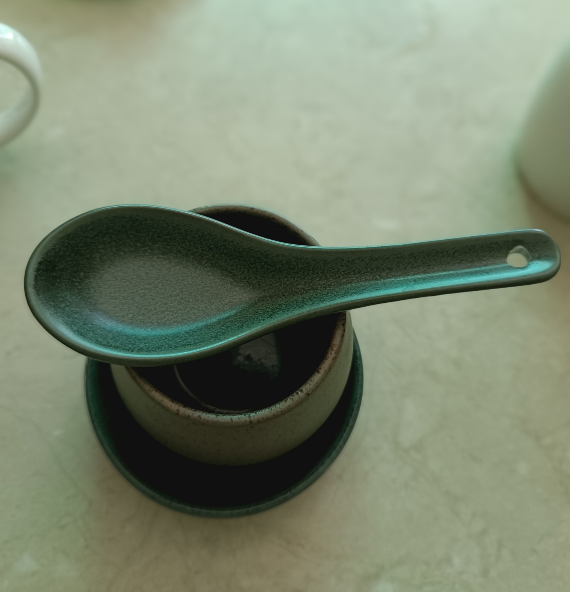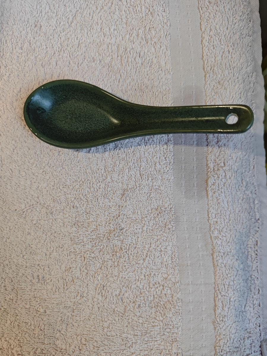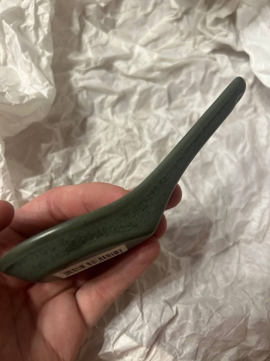Купил для коллекции к зеленому набору бренда. В целом, неплохая. Идеально подходит по размеру в соусник 8,5см. Не понравилось, что дырочку оставили без покраски, а еще на всей посуде Loveramics есть надпись, а эта ложка как будто не от них.