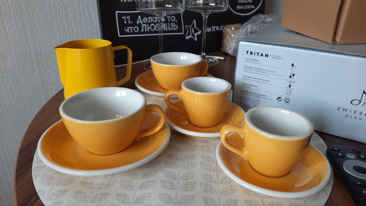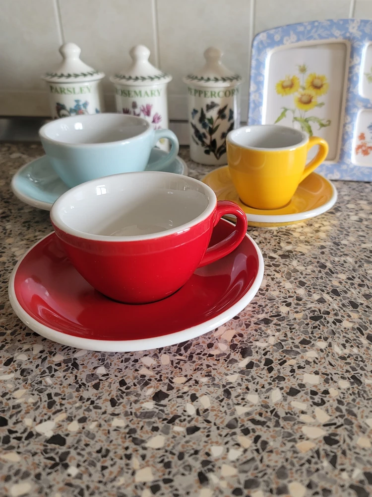 Прекрасные чашки, уже которые по счету заказываем, но другого размера. Очень солидные и выносливые, подходят для посудомоечной машины, прекрасные цвета. Ошушение, будто в хорошей кофейне.
