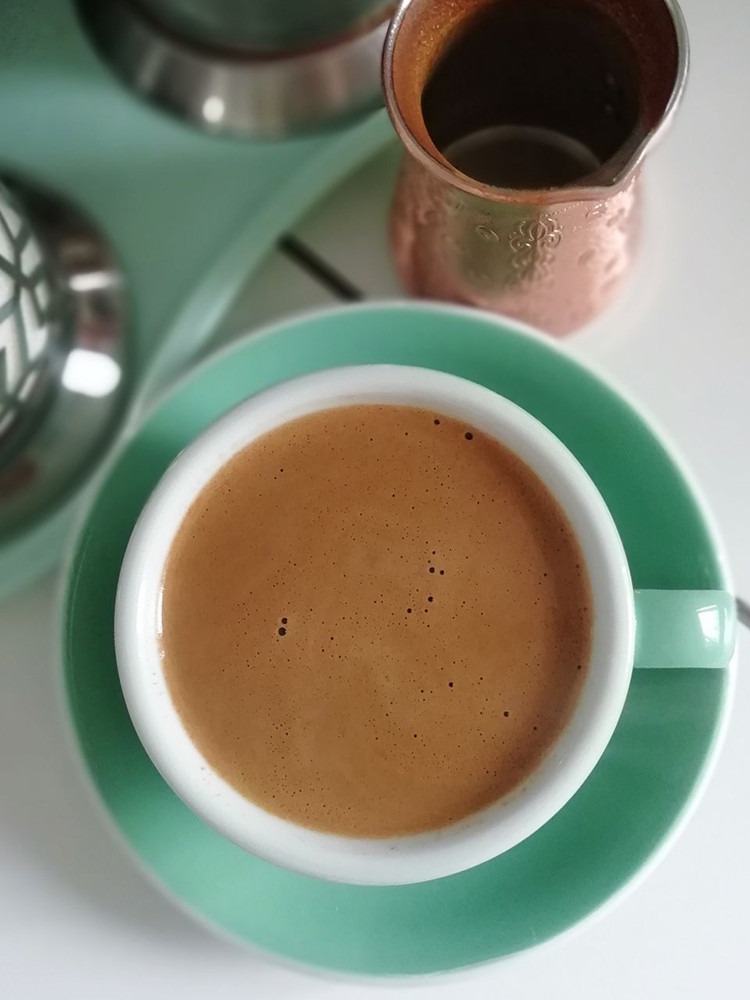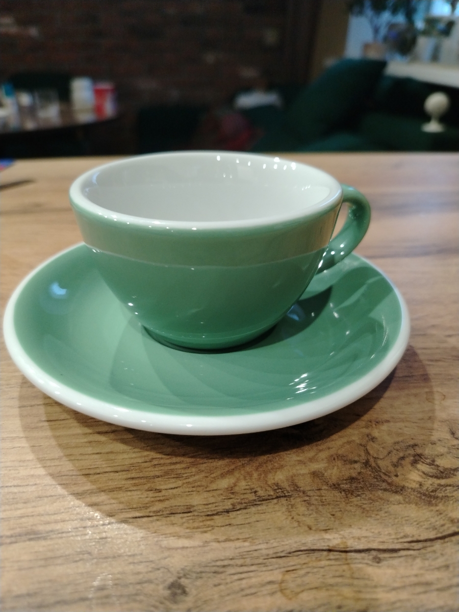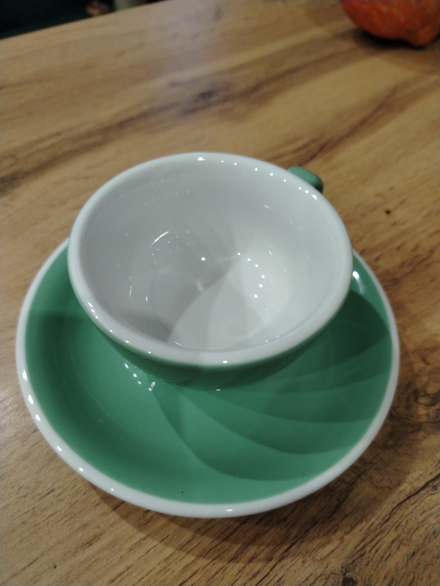 Прекрасная кофейная пара: толстые стенки, красивый изумрудный цвет, удобно держать в руке. Объем то, что нужно для одной чашки. Пить кофе из нее одно удовольствие!