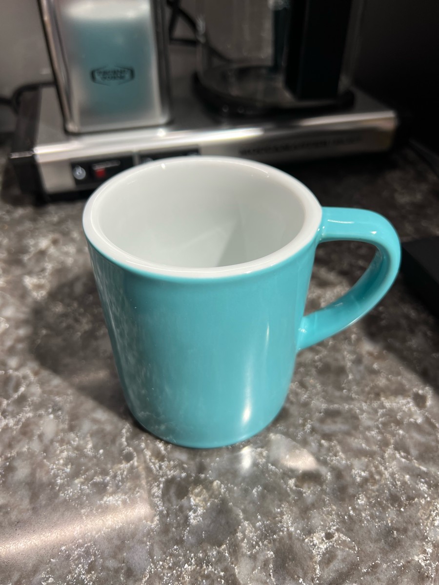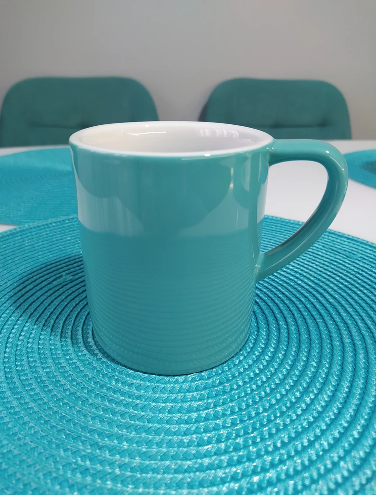 Давно видела эти кружки в кофейнях, и до этого находила их только на американских сайтах, теперь их можно приобрести и здесь. Красивый насыщенный бирюзовый цвет снаружи и снежно-белый внутри. Единственное, стоит обратить внимание на то, что кружка будет достаточно увесистой, если вдруг это для кого-то важно. А так это теперь моя любимая кружка в самых уютных кофейнях)