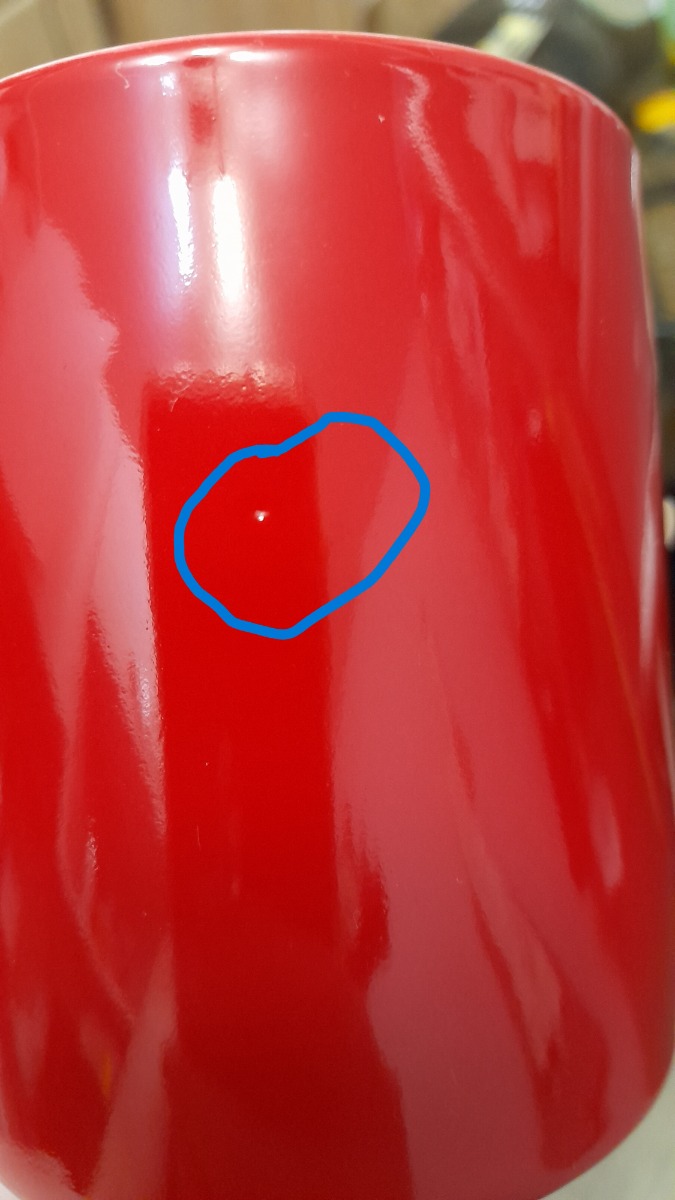 Кружка хорошая, но к сожалению есть маленький дефект по красной глазури.