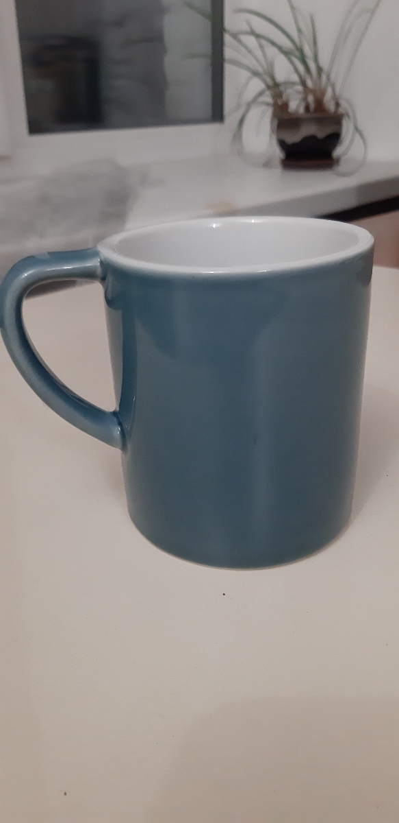 Спасибо большое! Кружки отличного качества. Была одна из них, очень долго прослужила, но неудачно упала и разбилась, при чём на крупные куски. Увесистая 553г. Выбрали того цвета, что и была - мятного. На фото мятный, голубой, синий.
