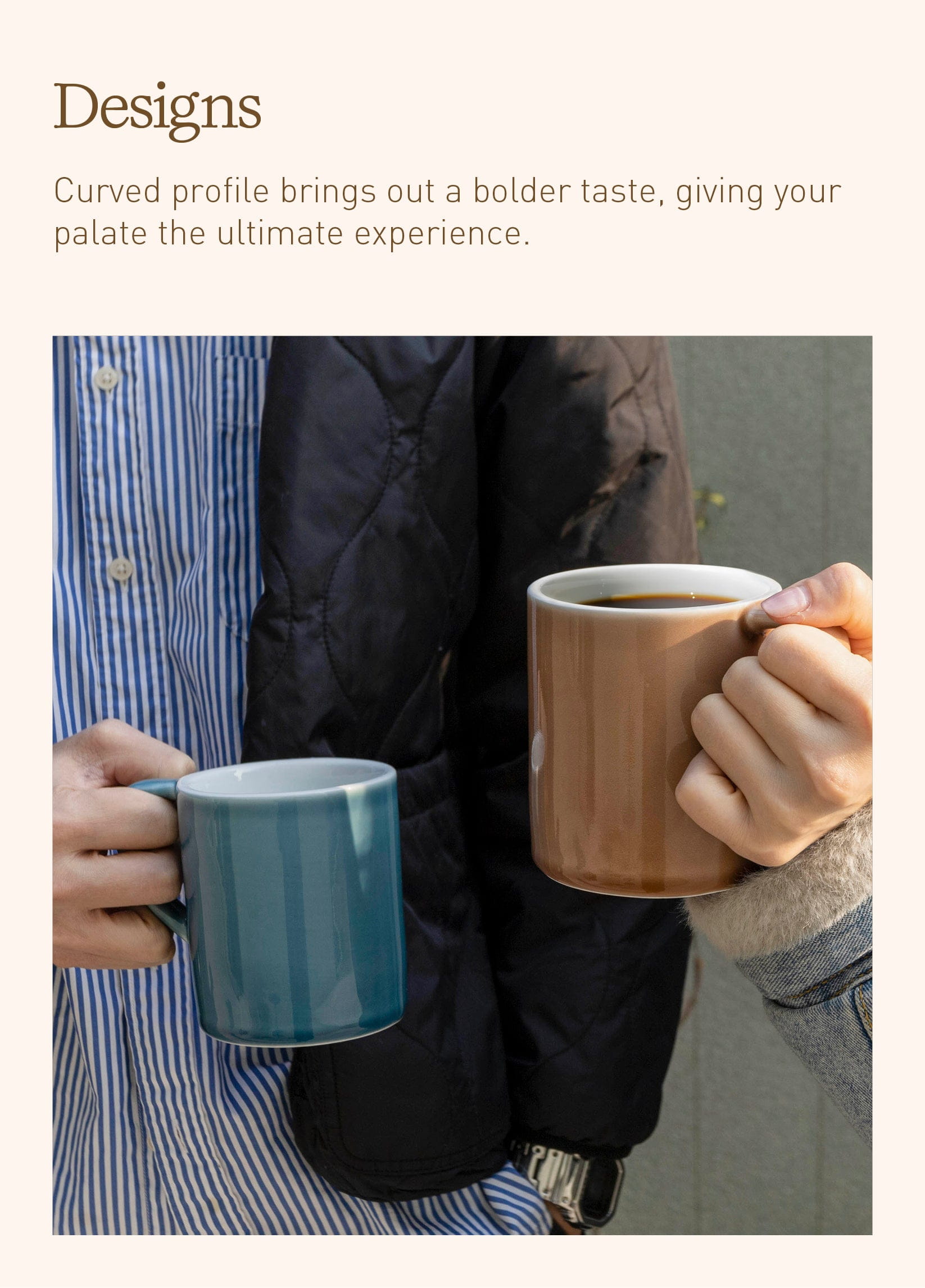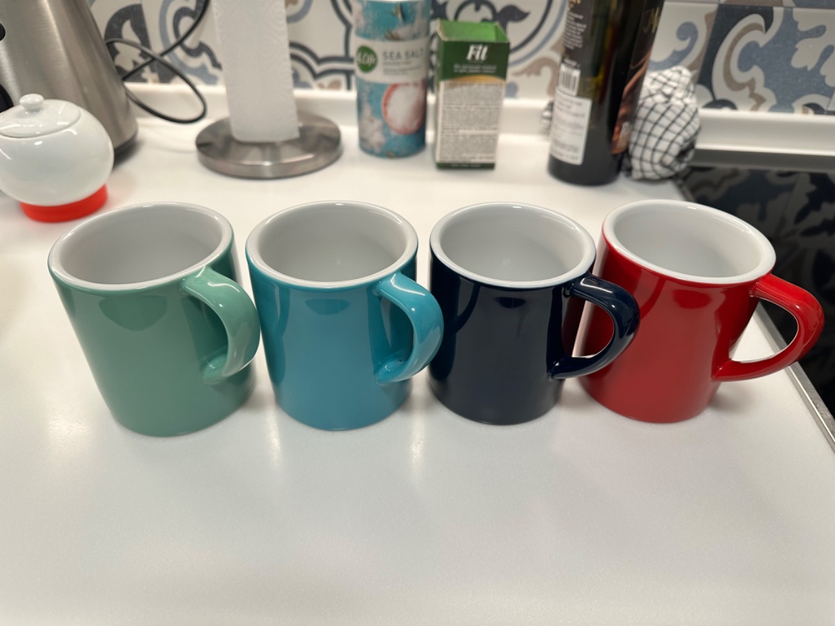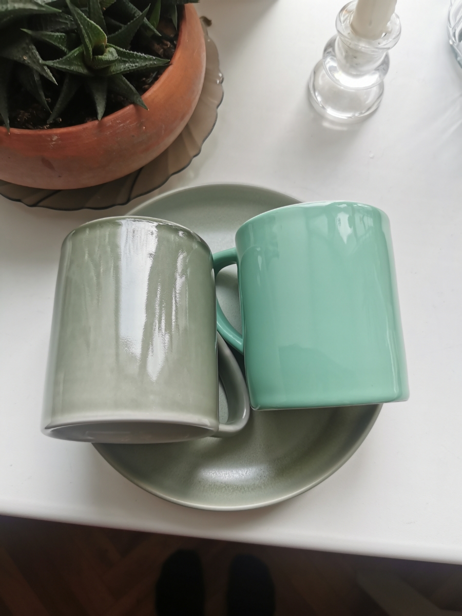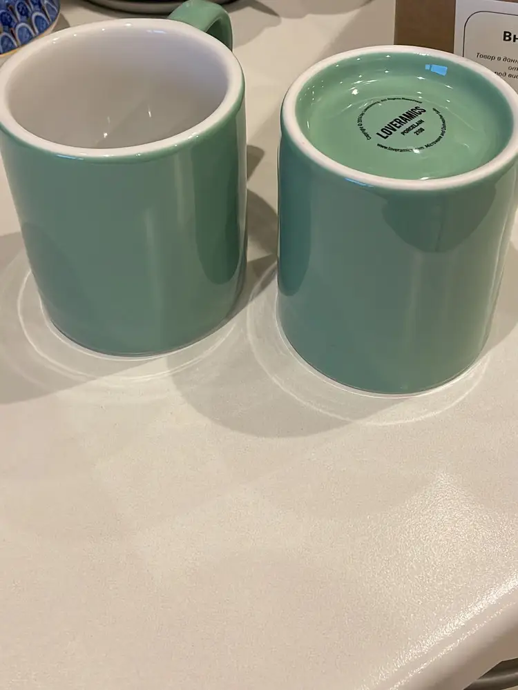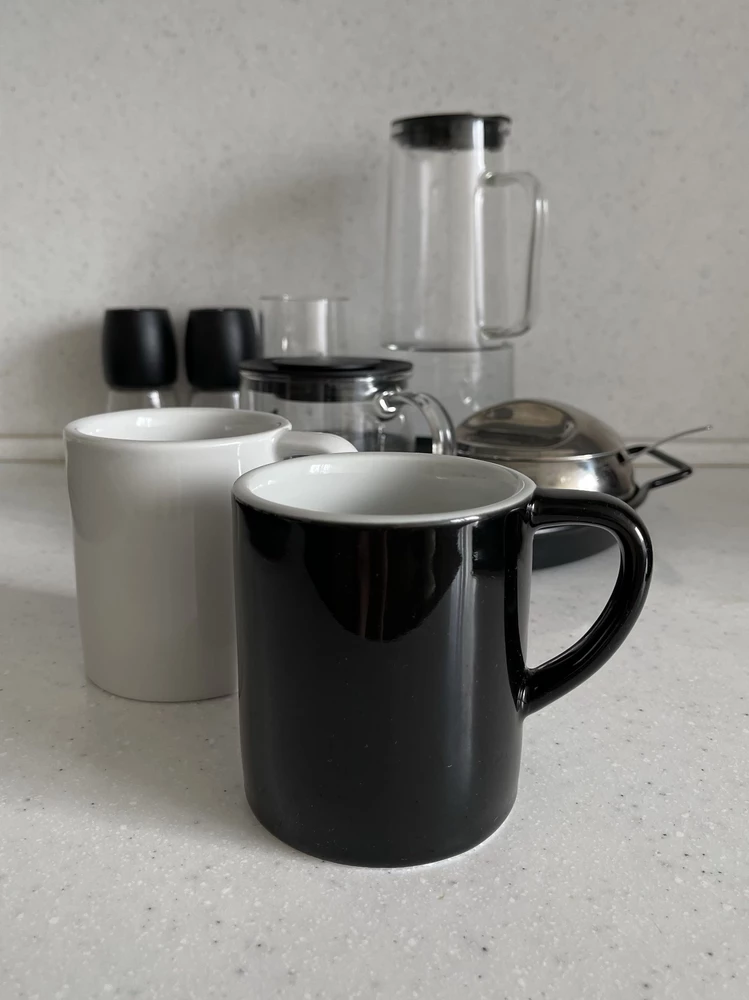 Кружечки отличные, тяжелые, с круглым донышком :) думали пойдут на утренний латте, но не хватило объема. Нужны больше ~400-450 мл)) Оставили, пьем чай из них )