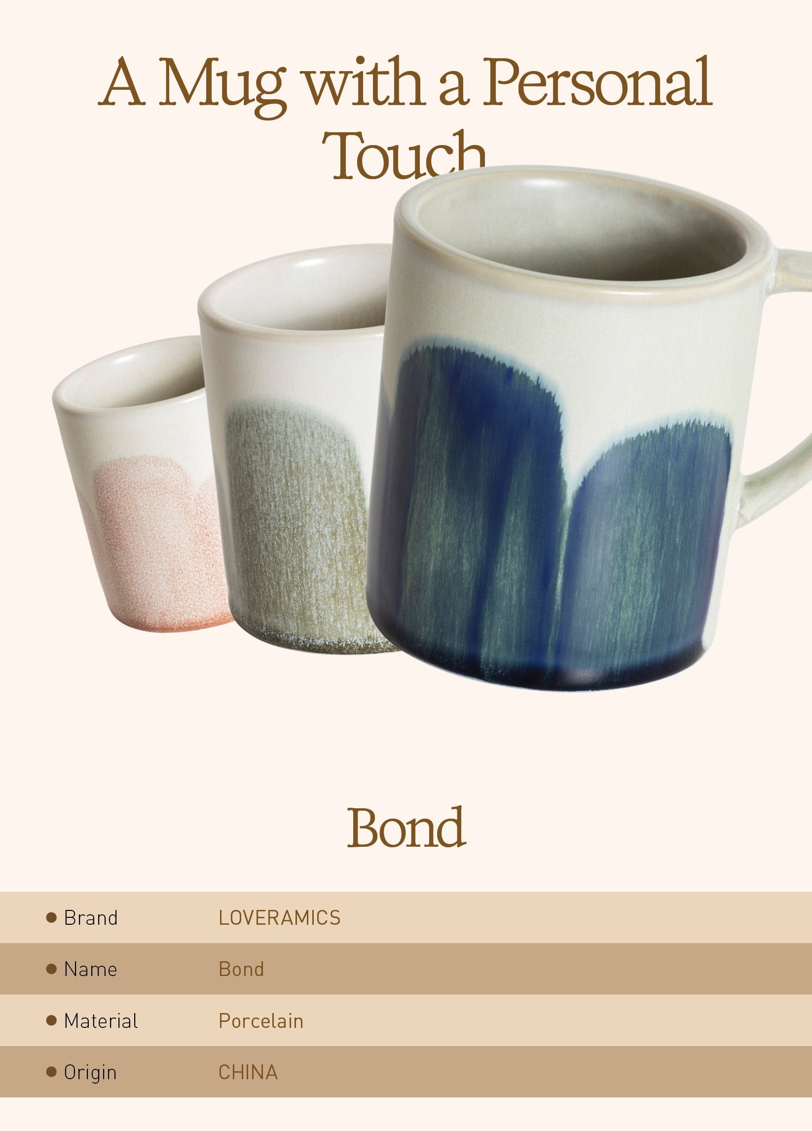 Это самые стильные кружки для кофе раф, капучино и т.п. Тяжеленькие , фарфоровые. Очень приятно, что достались мне по такой цене. Нигде не могла найти именно такую кружку этой фирмы, часто попадались с выгнутыми стенками , а хотелось именно формы Bond. Благодарю!