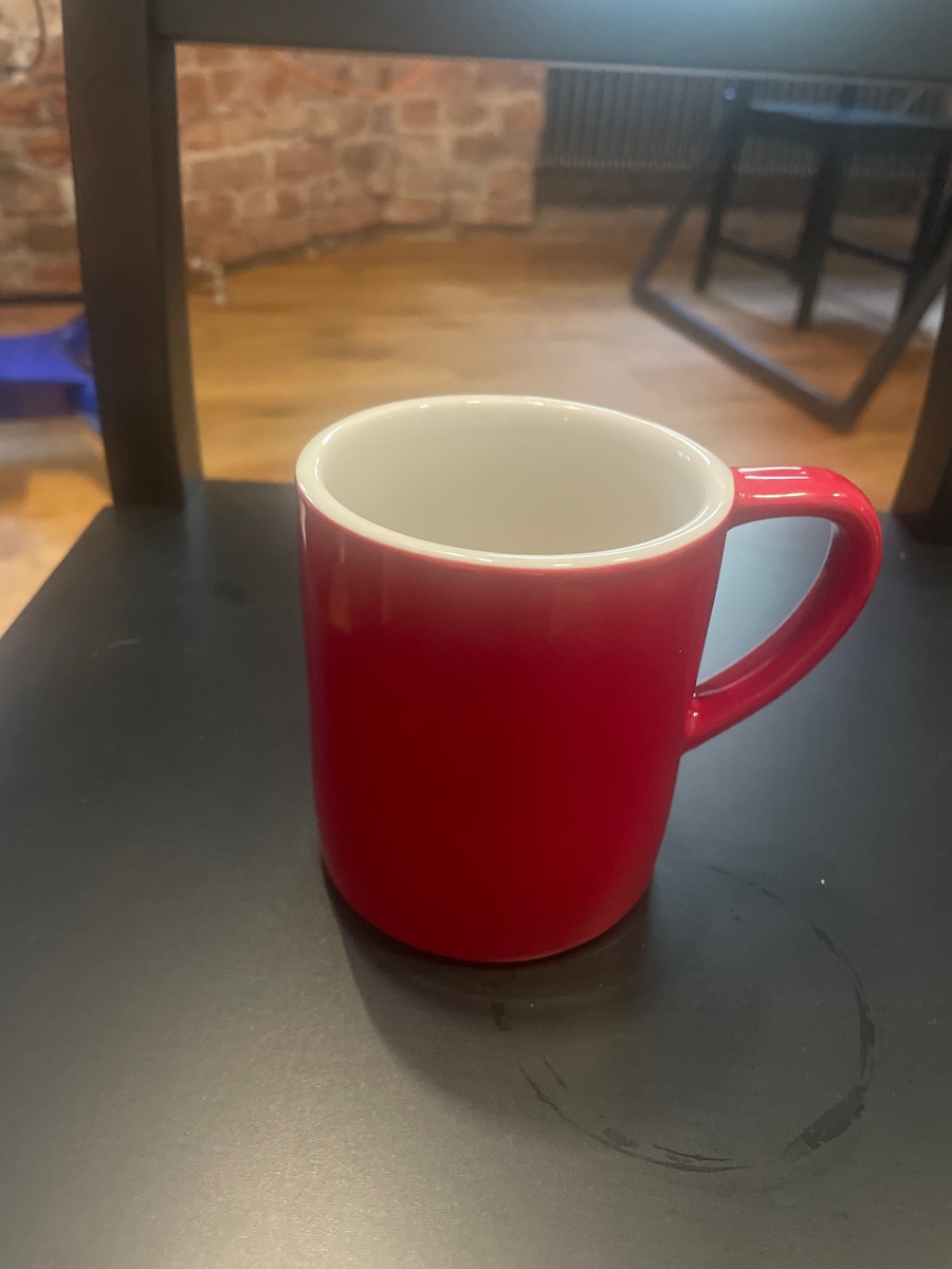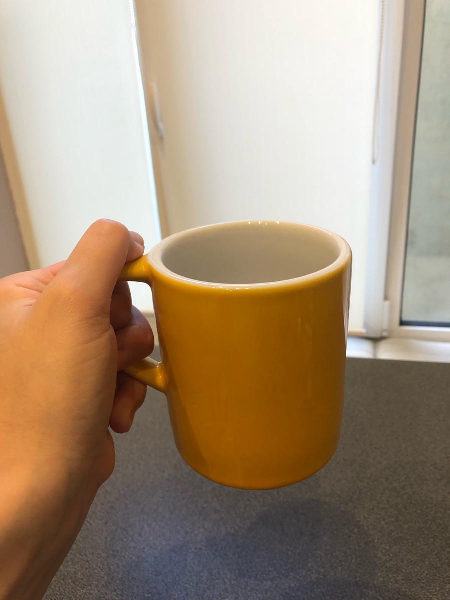 давно охотился за этой кружкой. увидели в кафе и понравилась форма. очень удобная.