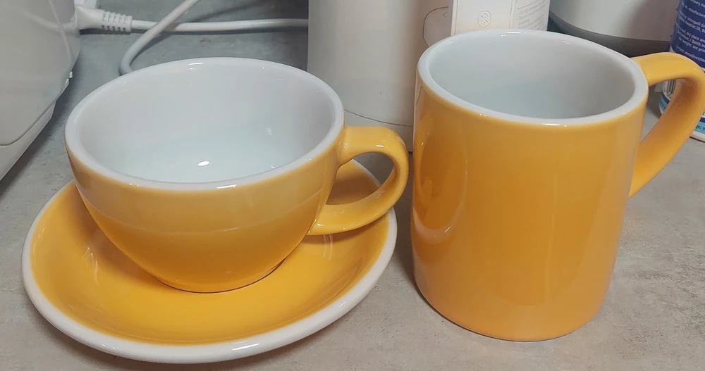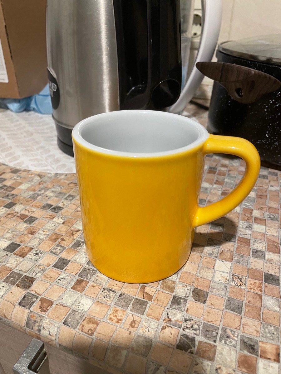 Итак, вес полкило. Реальный объем под край 280 мл, комфортный - 250 мл, имейте в виду. К качеству вопросов нет, отличная эмаль, как внешняя, так и внутренняя. Понимаю, что желтый, это уже попса, но как же он хорош в реальности! Конечно рекомендую всем кофеманам и просто любителям красивых вещей.