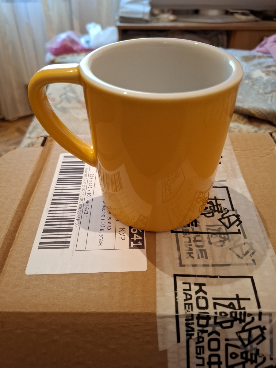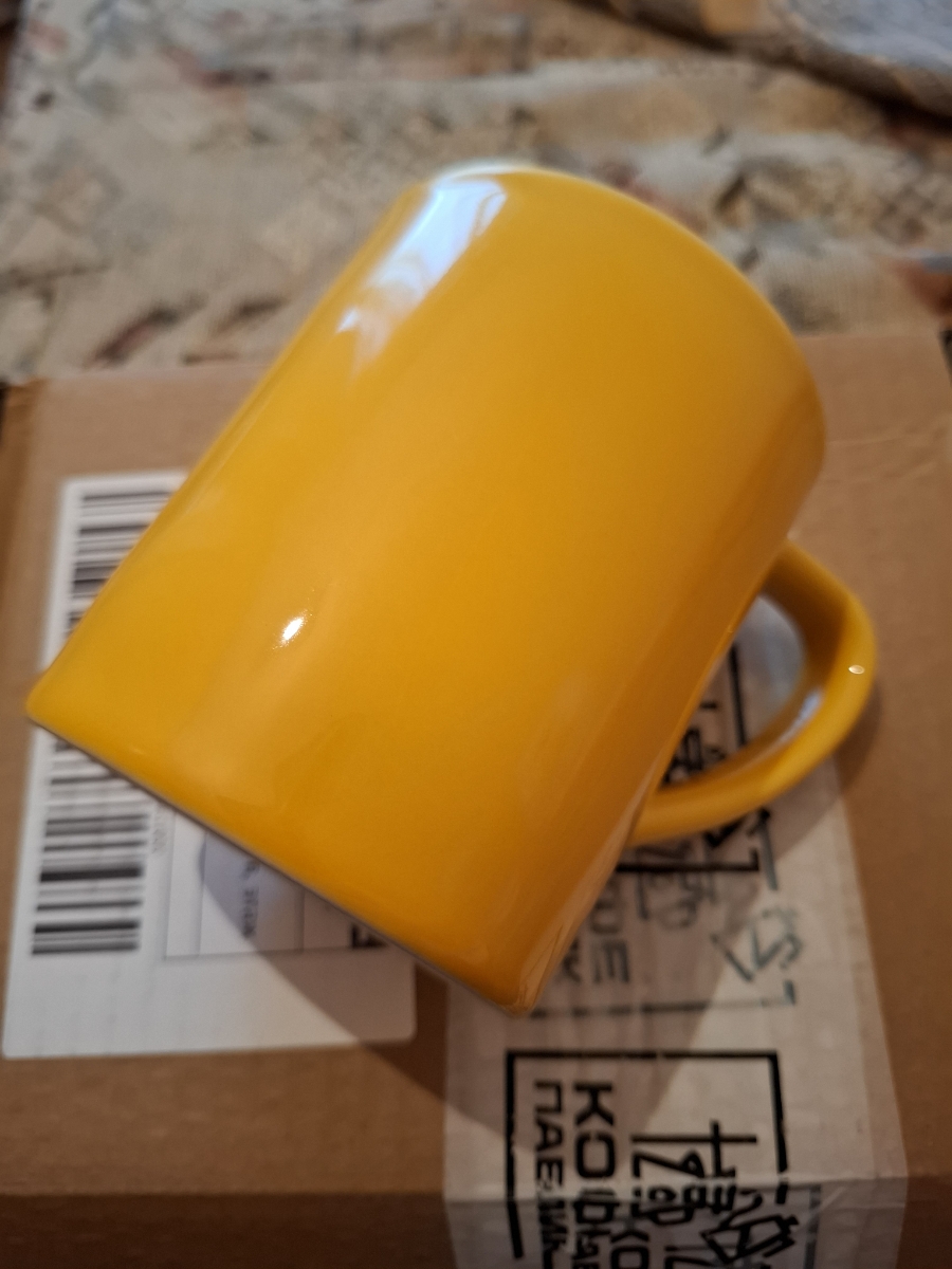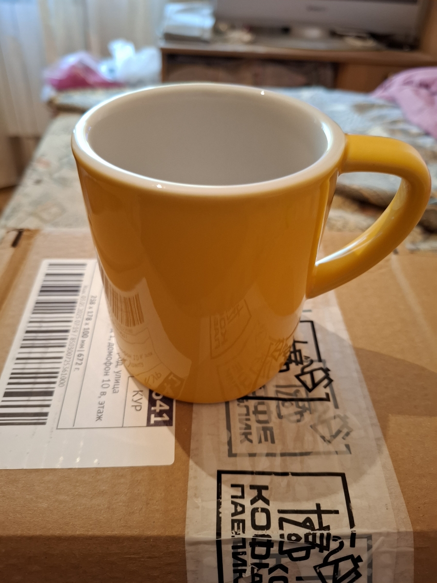 Идеальная кружка, пришла хорошо упакованная, цвет насыщенный желтый, как на фото