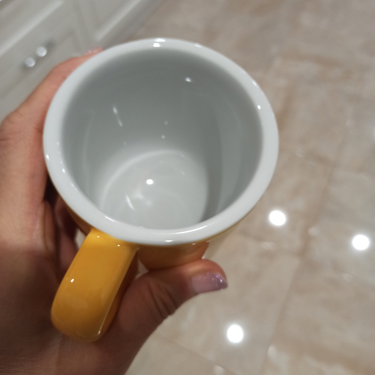 Отличное качество! Глазурь просто шикарная по цвету и гладкости, удивительно сочный цвет и приятный оттенок. Да, ручка удобная. Увы, что то недооценил заранее вес, моя asa selection на 350 мл весит 239 грамм против 541 грамм у этой. У чашки полукруглое дно, и там серьезное утолщение, т к снаружи она почти прямая, видимо чтобы сохранять напиток дольше горячим. Более полукилограмма только у сухой чашки, и под килограмм с напитком.. Извините) По праздникам можно, но не на каждый день перед компьютером)