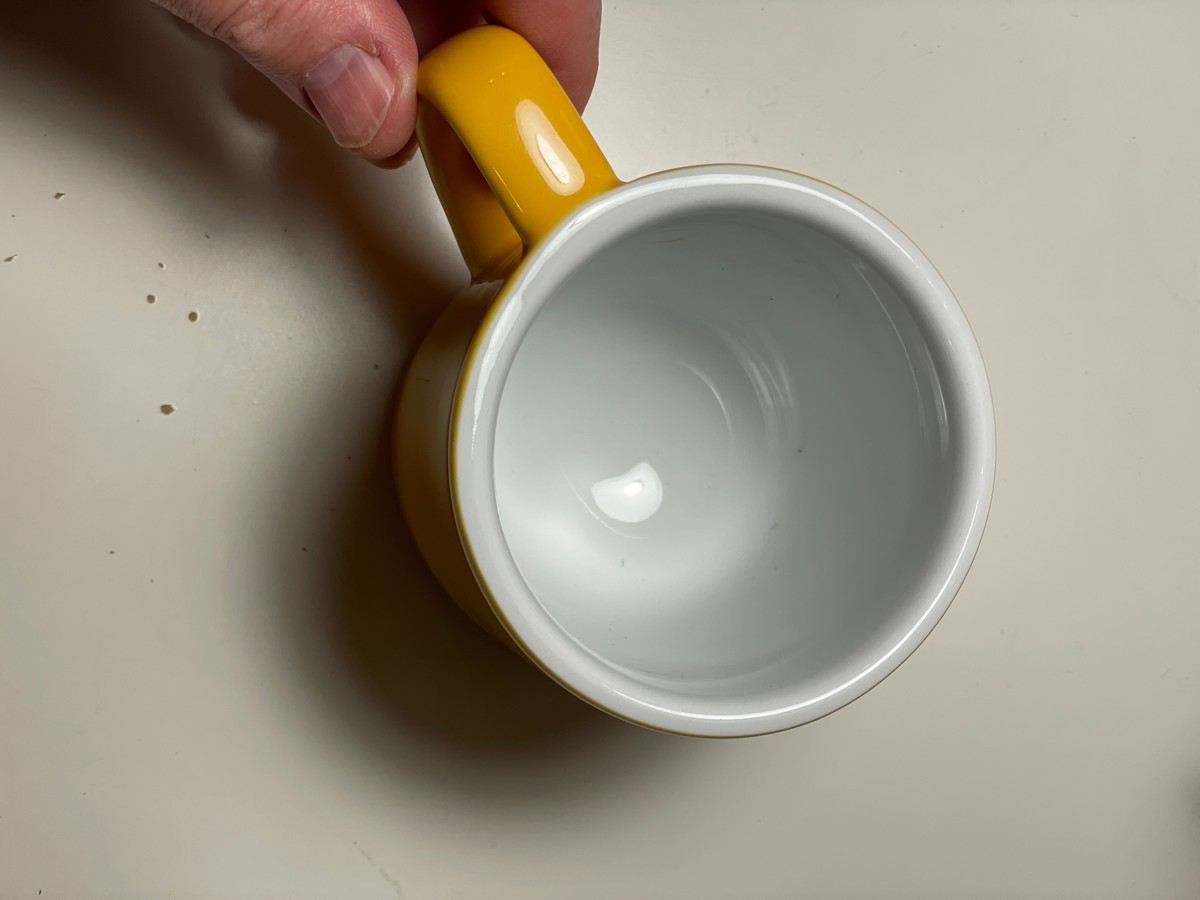когда пьёте например фильтр кофе у него есть особенность оседать слоями и необходимо его помешивать. так вот, в чашке с круглым дном после глотка происходит саморазмешивание. чашка хорошо сохраняет тепло. удобрая ручка. выбрал желтый цвет , так как хочу чтобы она радовала меня утром как цвет брал еще салатовый, он тусклы и не так понравился как желтый. чашка весит 549 грамм. ксть видео где её пвтаются разбить , что не удается, это тоде брльшой плюс