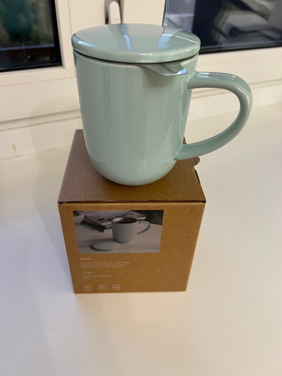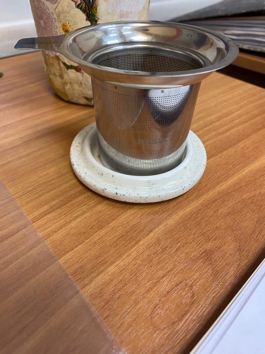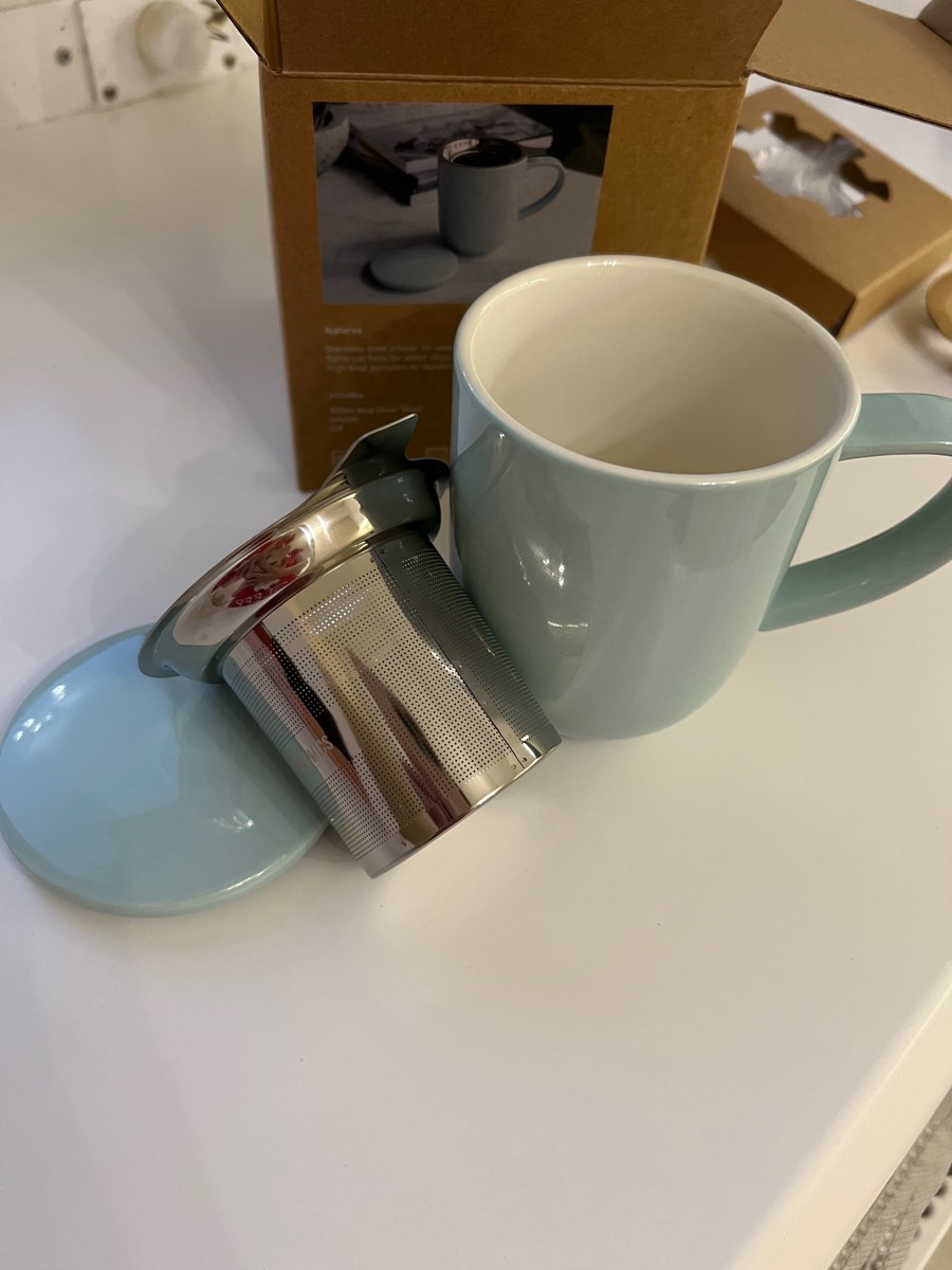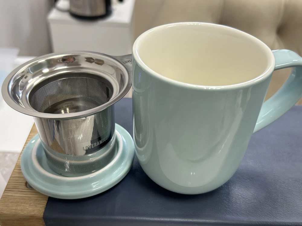 Это вещь! Покупала мужу на подарок к НГ.....—очень понравилась кружечка!... и размер и цвет и внутри белоснежный фарфор и сеточка для заварки ! Очень эргономичный аксессуар, на обеденном столе ,как у чаеманов, у нас всегда стоит:)