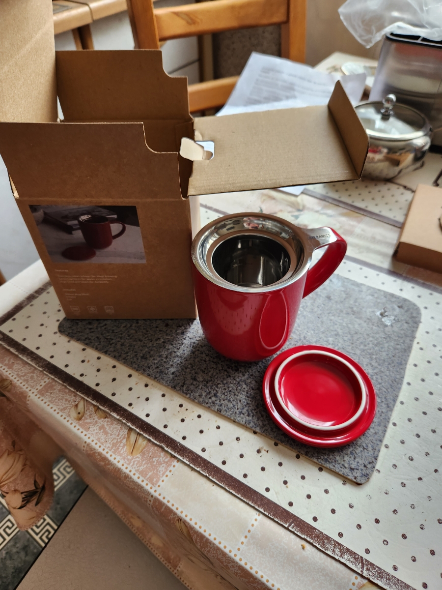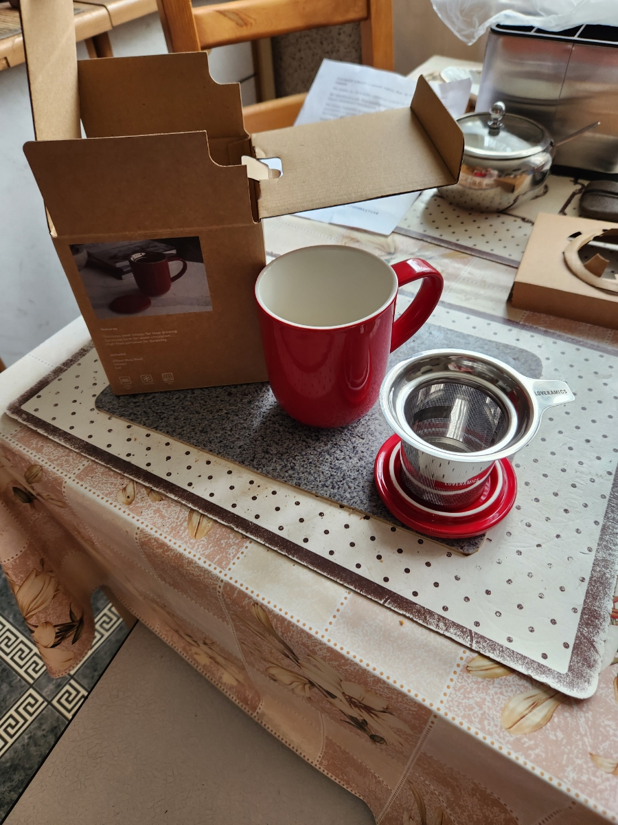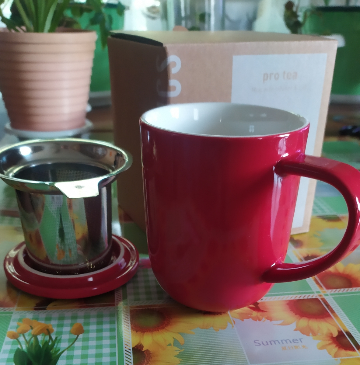 Кружечка изумительная! Очень добротно была упакована, ни одного скола или царапины не было. Красивая. Сочный цвет. Приятно держать в руке. Ситечко вместительное, очень удобное, перфорация мелкая, поэтому ничего лишнего в чай не попадает. Однозначно рекомендую к покупке. Это удовольствие в виде кружки