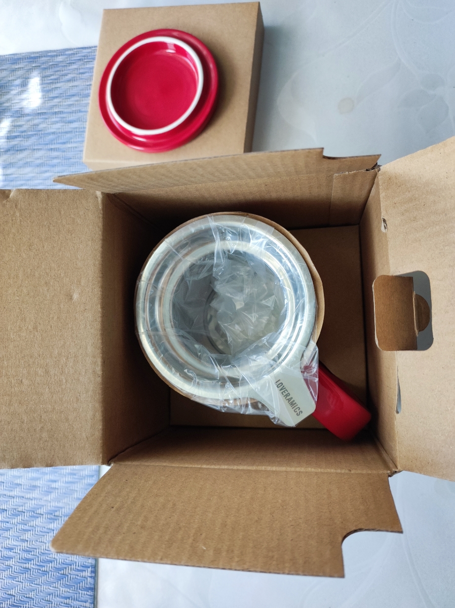покупала в подарок, упаковано хорошо. Кружка объемная, удобная ручка. Сито из хорошего металла. Кружка падала на пол-осталась целая)
