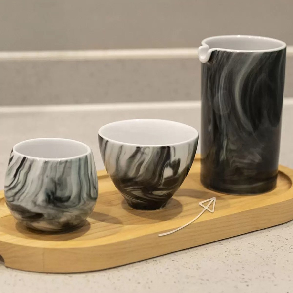 Эстетичный сервер для кофе, очень нравится. Единственный и не большой минус в отсутствии ручки. С готовым напитком сильно нагревается