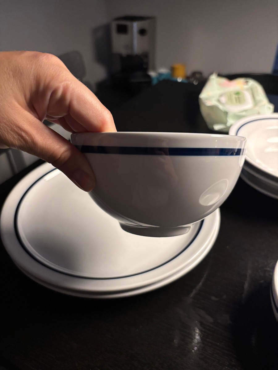 Солидная вещь. Тяжелая Фарфоровая чаша для каши или других полужидких утренних блюд. Это не французская утренняя мисочка, в которую часто наливают кофе с молоком или какао. Функция у этой тарелки определенно другая. Для плотного завтрака эта тарелка очень хорошо подходит. Она удобная и устойчиво стоит на любой горизонтальной поверхности.