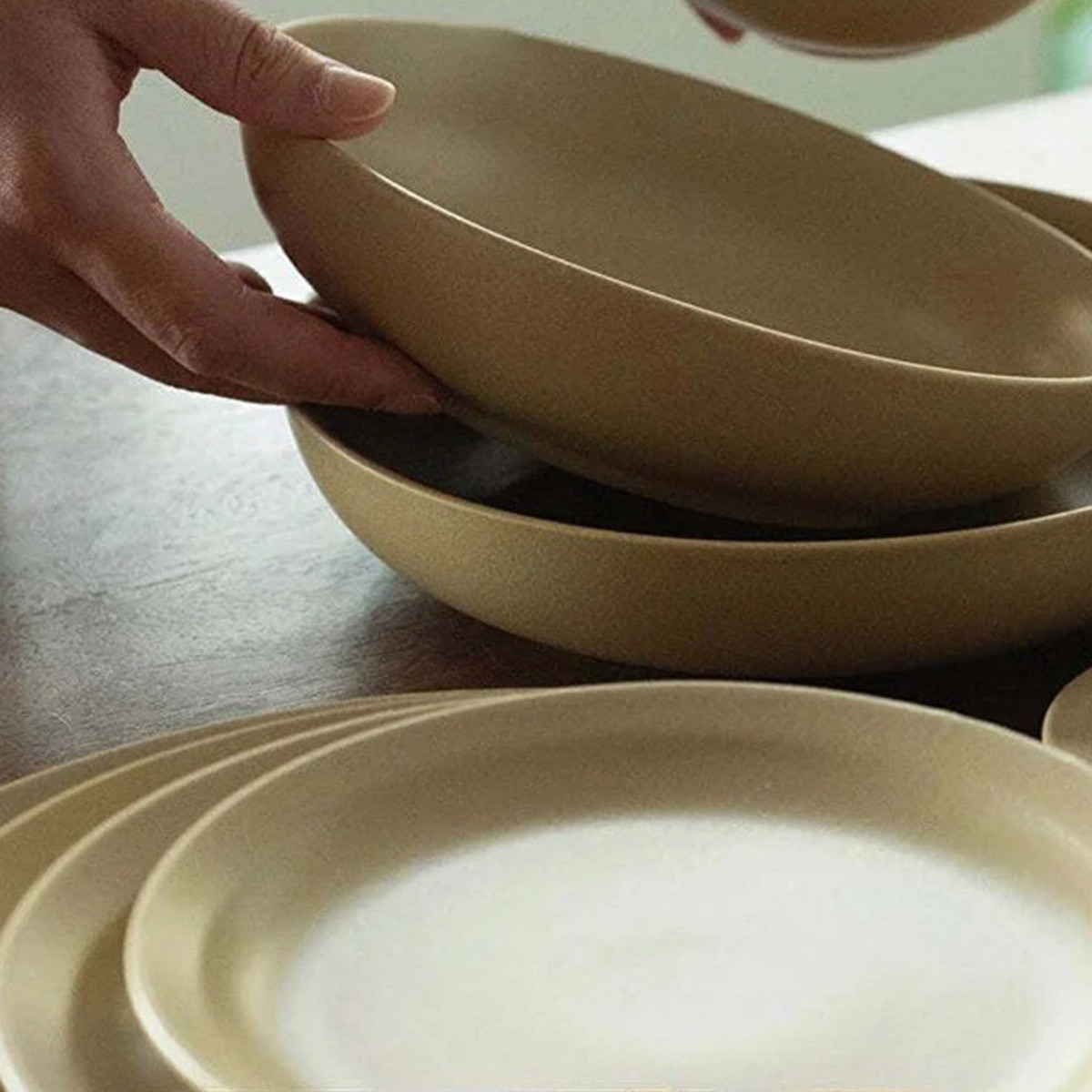 идеально под цвет кухни) добавлено спустя год: некоторые чашки просветлели от частой мойки губкой (заполировала и стёрлись бугорки которые были изначально). хотя если глазурь так стирается от обычной губки то что останется от этих тарелок через 20 лет?( а так тарелки красивые