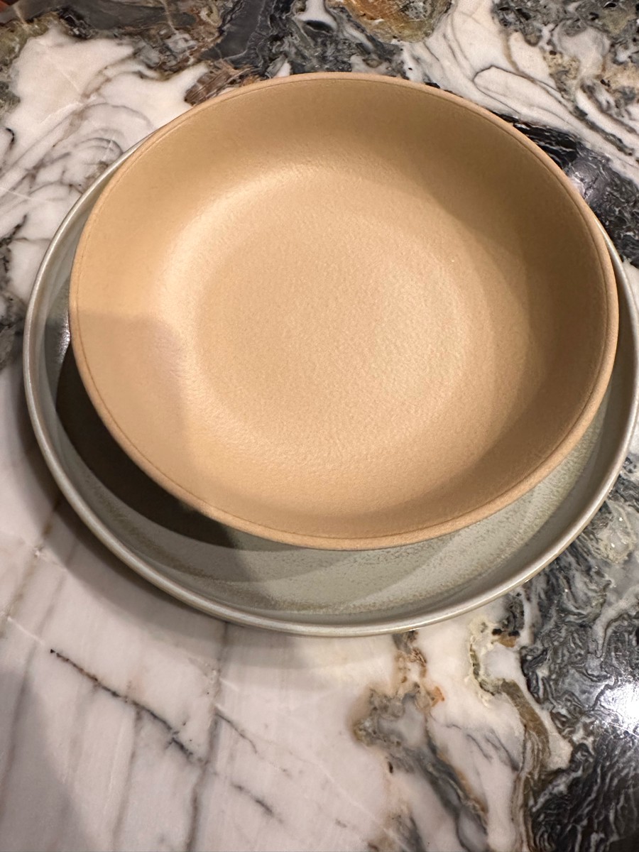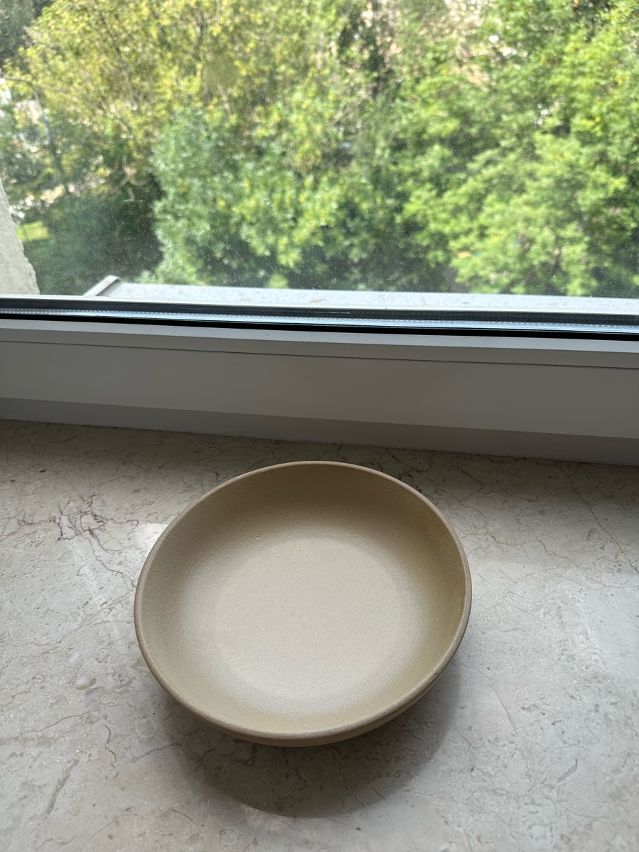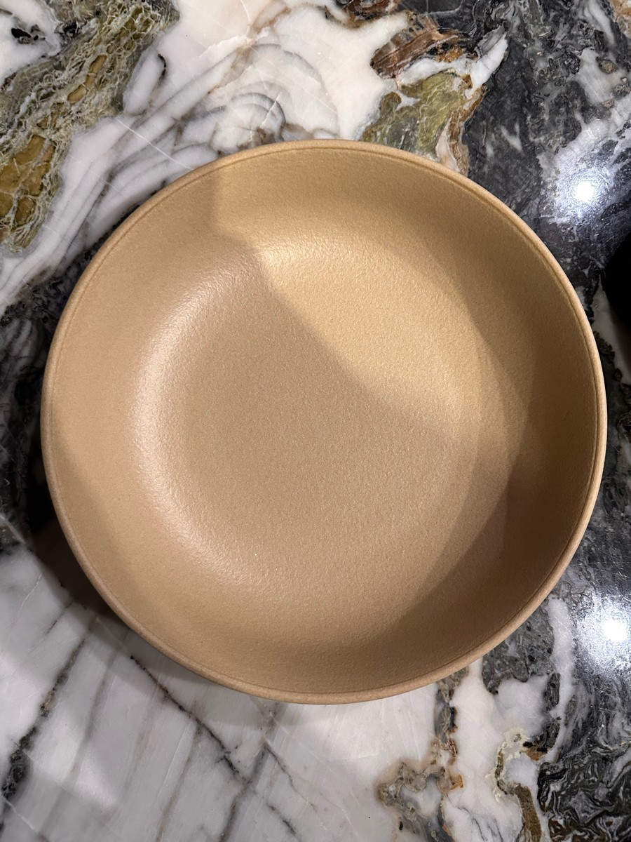 Тарелка удобного размера для супов и салатов. На ощупь шершавая. Мне сначала не понравилось, а потом как понравилось — как будто из камня. Тяжелая. Красивый универсальный цвет. Хорошо сочетается с посудой из других серий бренда. В некоторых из них теперь сложно собрать полный комплект, зато можно собрать свой собственный, подбирая нужные предметы из разных линеек. В целом качество хорошее, но есть небольшие дефекты. На этой тарелке, например, есть белая непрокрашенная точка, которую не считаю критичной. На глубокой тарелке для каш оказался плохо обработанный край, и на одной из зеленых тарелок для вторых блюд из другой линейки дефект окрашивания. Это для информации, что такое возможно. С другой стороны их можно считать особенностями, которые добавляют индивидуальности посуде. Но, перфекционисты, имейте это в виду. Качество оцениваю на 4+. Стиль на пятерку. Упакованы отлично, в пузырьковую пленку. Доставка вовремя.