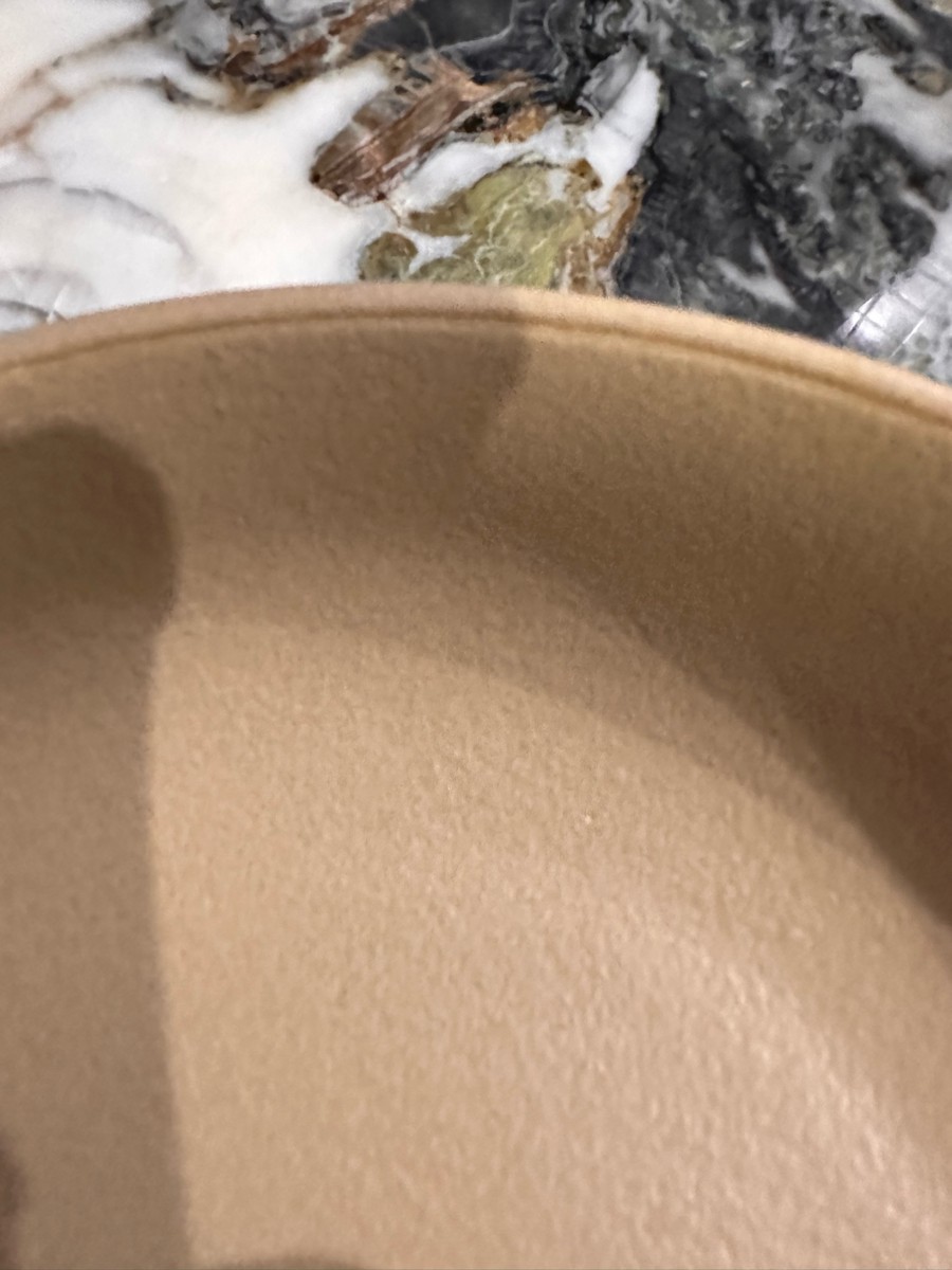 Хотела с неоднородной поверхностью не глянцевую и вот она! Достаточно легкая, красивый песочный цвет, отличная цена для такого качества! Заказала еще другую посуду этого бренда, однозначно классная!