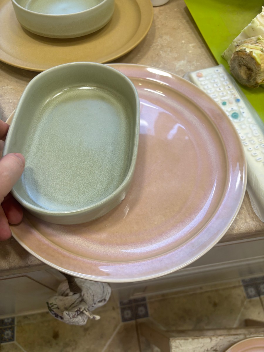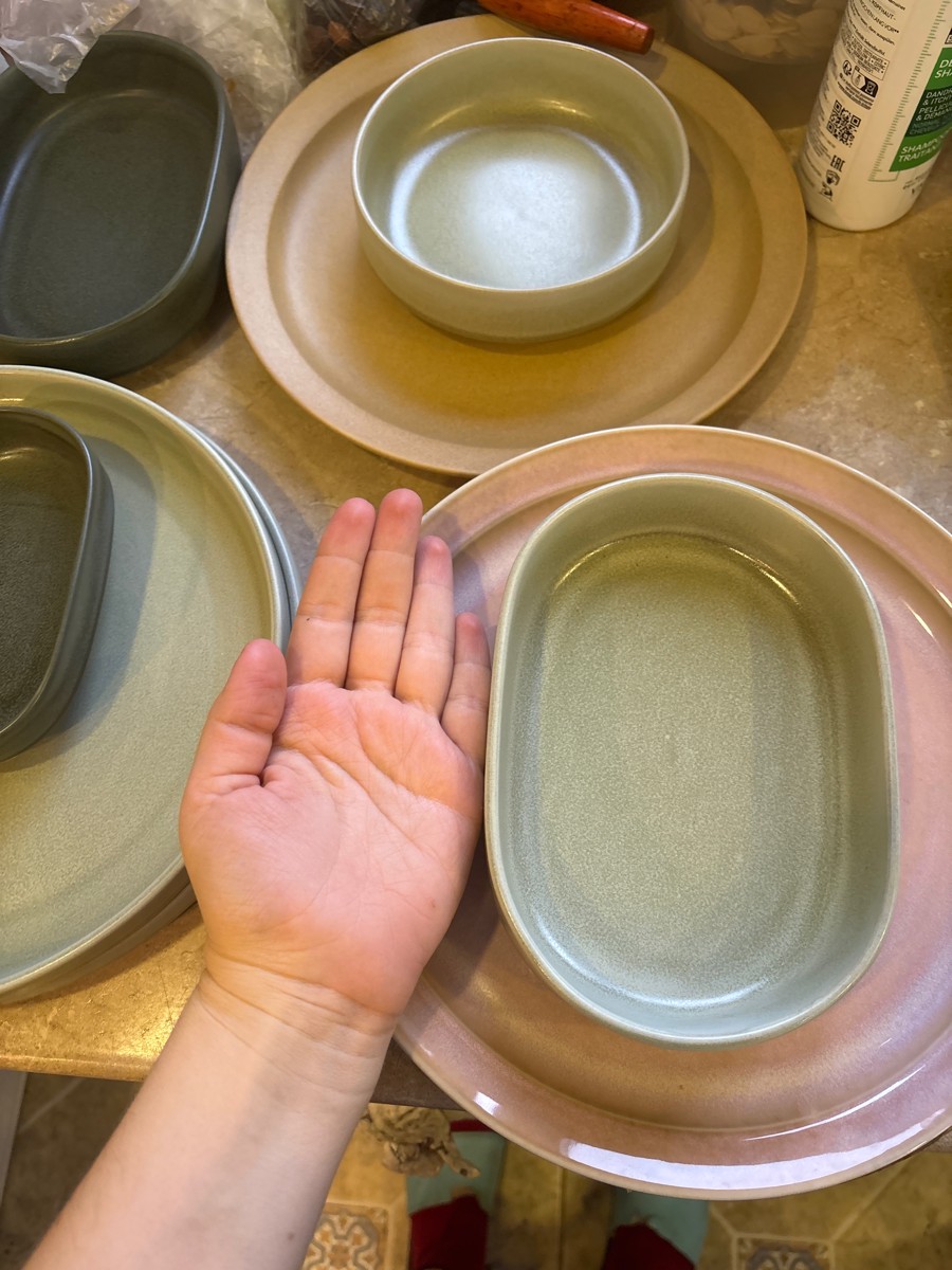 - поверхность посуды покрывается глазурью вручную, поэтому каждый предмет посуды индивидуален, допустима незначительная разница в прокраске и зернистости;