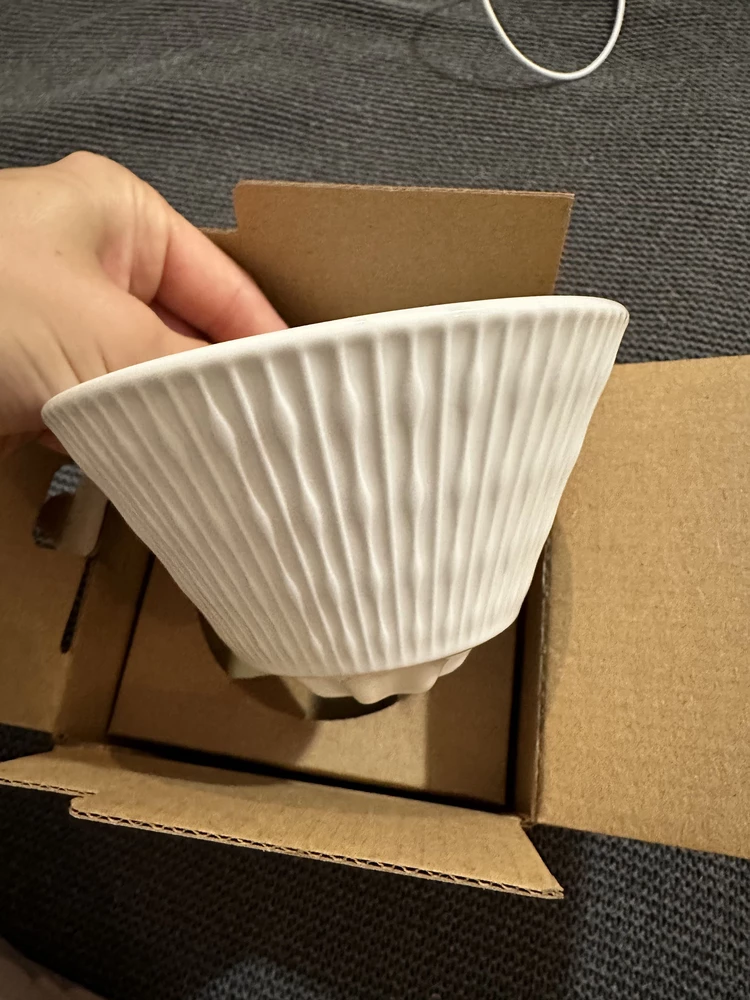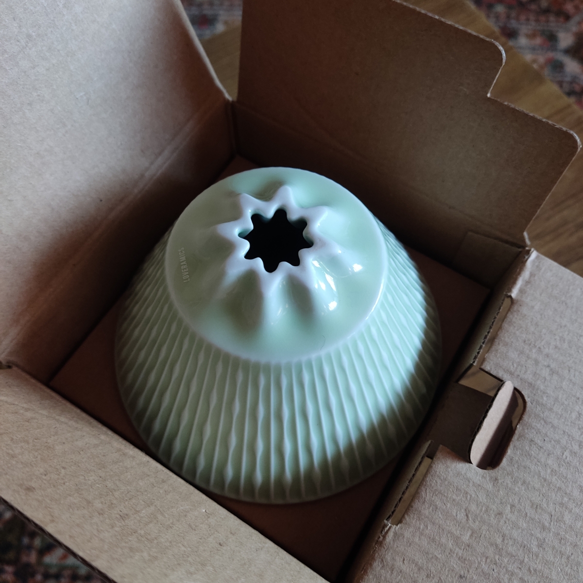 Рифленая поверхность этой керамической воронки влияет на скорость потока воды, а форма в виде цветка увеличивает площадь на 120%, что ускоряет время заваривания.